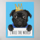 This dog themed design features a pug wear a crown with a sign which says i rule the world.