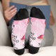 Personalise these Funny "One of a Kind" Christian Women's Socks! It Features a Mug of Hot Coffee Surrounded by Flowers and Hearts on a Pink and White Background and the Comical Words..."I Run On Jesus, Chaos and Coffee"!