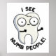 I See Numb People Funny Tooth Pun features a cute tooth looking zonked out because he's been numbed . Perfect Puns gift for family and friends who love cute dental tooth puns.