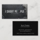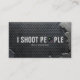 Funny "I shoot people" Professional Photographer Camera Lens Business Card. With cracked metal background.