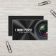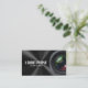 I shoot people. Professional Photographer Camera Lens Business Card. With Silver faux Metallic Background.