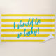 Fun yellow and white cabana stripe beach towel, with the words I should be so lucky! Sassy towel for your day club party or beach vacation.