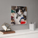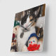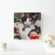Wall clock - Macy, a young, full blooded Calico cat has climbed into a basket of snowmen to cuddle and sleep. Looking for more prints or products? Feel free to visit my store: http://www.zazzle.com/timelessmomentsphtgy