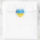 Show your support to Ukraine with this inspirational sticker. This round sticker features a love heart in the traditional blue and yellow colors of Ukraine and inspirational text, "I stand with Ukraine".