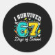 I Survived 67 Days Of School Funny 67 Teachers Stu Classic Round Sticker
