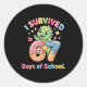 I Survived 67 Days Of School Ice Cream Drip Dino R Classic Round Sticker