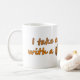 "I take everything with a bit / bean of coffee" (© Mira). A pun on "take everything with a grain of salt." This is meant for coffee lovers, who easily drink coffee anywhere, anytime, with everything.