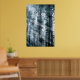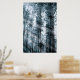 Blueish trees slope against a background of soft focus monster pines. Dramatic verticals show the scale of the ancient forest towering above the viewer.