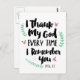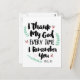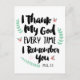 Modern Calligraphy Design typography art in black with words, "I Thank God Every Time I Remember You." Design is accented with colourful flowers and laurels. Bible Scripture is from Phillippians 1:3.