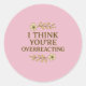 I Think You’re Overreacting Sarcastic Quote Classic Round Sticker