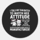 I Told My Daughter To Watch Her Attitude Funny Cat Classic Round Sticker