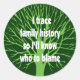 Brown silhouette of a tree with a caption I Trace Family History So I'll Know Who To Blame.