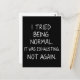 Funny sarcastic quote about trying to be normal. Perfect for humour lovers and anyone who enjoys witty sayings with a rebellious twist.