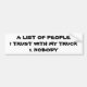 I Trust Nobody with My Truck Bumper Sticker