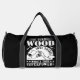This black duffle bag is perfect for woodworkers and crafters, declaring "I TURN WOOD INTO THINGS" and asking "WHAT'S YOUR SUPERPOWER?" The design features a hammer, saw, and other tools, making it an ideal gift for anyone who loves creating with wood. Edit colour of the bag caps and body in the Design tool to your favored colours.