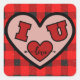 This cute romantic sticker features hearts and the sentiment "I love you" (I ♥ U). The red and black buffalo plaid associated with the mythic lumberjack Paul Bunyan lends the rugged but cozy look of flannel. This would make a fun addition to a Valentine's Day or anniversary present.