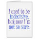 If your decision making skills are problematic, then poke fun with this ironic statement. Reads "I used to be indecisive but now I'm not so sure."