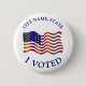 I Voted American Flag Red White Blue Election button. Unique, beautiful, stylish design. Easy to be personalised. Font style, size and colours can be changed.