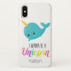 This super cute Case-Mate Barely There iPhone X Case has a blue cartoon whale dressed up as a unicorn with the words "I wanna be a unicorn" in multi-coloured lettering. There is a customisable name template for you to personalise if you wish, or you can delete the name if you prefer that. The background colour can be changed by using the customise feature.