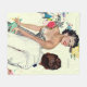 Artist:Joe DeMers | Woman in a zebra striped dress and red flower pin leaning over in a chair talking to a man in a white suit