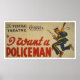 From Zazzle's vast collection of Work Projects Administration (WPA) and War posters--an amazing assortment of iconic images designed to promote the arts, public welfare, and patriotism--This commemorative poster print features a poster for the Federal Theatre Project presentation of -I Want a Policeman- at the Savoy Theatre in San Diego, showing a policeman running with gun drawn and carrying a baton, created in 1936.