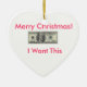 I Want Money Ornemeant Ceramic Tree Decoration