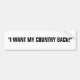 "I WANT MY COUNTRY BACK!" BUMPER STICKER