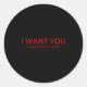 I Want You I Just Can't Flirt Funny Jokes (on Back Classic Round Sticker