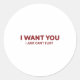 I Want You I Just Cant Flirt Funny Romantic Classic Round Sticker