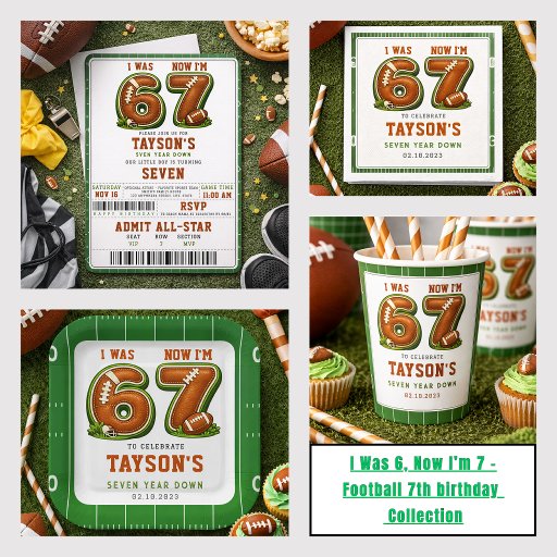 I Was 6, Now I’m 7 – Football 7th birthday photo Invitation