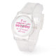 My granddaughter is graduating with her PhD on May 2nd and I can’t wait to give her this beautiful timepiece. Such quality and workmanship. I’m glad I bought the clear because she can wear it with anything. Thanks so much for quality and fast shipping. Excellent. Very bold print