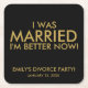 Celebrate new beginnings with this cheeky and memorable “I Was Married – I’m Better Now” coaster. Personalise it with the guest of honour’s name and date to create a keepsake that perfectly captures the fun and freedom of a divorce party.