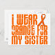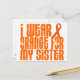 Support your Sister battling Leukaemia, Kidney Cancer, or MS and promote Awareness with ‘I Wear Orange For My Sister’ t-shirts, tees, sweatshirts, gifts, and apparel with bold grunge text and Orange Ribbon. Perfect way to Support your Sister during Awareness Month, Awareness Walks and other Fundraising Events, or ANY time in between! LIKE THIS?