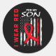 I Wear Red For My Son Heart Disease Awareness Flag Classic Round Sticker