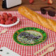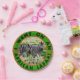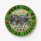 Custom made African Wildlife party paper plates for a Childs party, with a photo of two zebras being social and the slogan I went on an African Safari with green and brown colours.