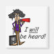 Funny attitude T-shirts, tote bags, cards, mugs, stickers, keychains, keepsakes, mousepads, and more with Stella proclaiming she will be heard!