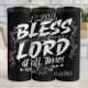 This beautiful black and white design features the declaration "I WILL BLESS THE LORD at all times." "BLESS THE LORD" is prominently displayed in a bold, expressive script, surrounded by elegant flourishes. "I WILL" and "at all times" are also in white, creating a timeless statement of continuous worship and devotion.