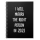 I Will Marry The Right Person In 2023 - Black Notebook. Add your favourite quote. Enjoy!