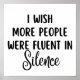 Funny sarcastic quote: I Wish More People Were Fluent In Silence, for sarcasm sayings lover dad, mum, grandpa, grandma, uncle, sister, brother, teacher, student, nurse… Great present idea to give in birthday, mother's day, father's day, women's day, teacher's day, parents day... Or wear it to school, work, outdoors, camping, meeting, wedding...
