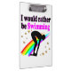 I WOULD RATHER BE SWIMMING PINK RAINBOW DESIGN CLIPBOARD