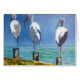 Three ibis, each standing on one leg, seem to be on guard as they scan the water. From an oil painting by South Florida Artist Betty Laur. www.bettylaur.com