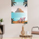 ibiza travel poster vintage blue beach spain travelling art palms tree
