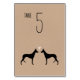 Black Ibizan Hound bride and groom silhouettes with heart. A kraft paper style wedding reception table card for Ibizan lovers. Each card must be numbered and added to cart separately. Visit Jenn's Doodle World for even more dog breed table cards and Ibizan Hound themed wedding planning products.