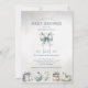 The light icy blue and gold colour scheme, set against a soft grey background that feels like falling snow, creates a magical winter wonderland. This invitation perfectly captures the warmth and nostalgia of a classic Christmas, making it ideal for a holiday-themed baby shower that’s both sophisticated and festive.