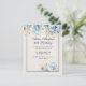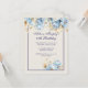 A lush watercolor floral with light airy bluetones. Classic typography for text. Blue, cream, white, linen with a touch of gold. garland bouquet for a beautiful Birthday Party Invitation. Feminine look for any birthday lady's special celebration.
