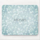 Chic and bubbly patterned mouse pad features a bokeh lights background in icy pastel shades of blue and aqua. Personalize with a name, monogram or business name in modern charcoal lettering if desired.