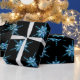 A colorful and elegant Christmas wrap, it features a pattern of ice-blue snowflakes (or Christmas stars if you prefer) scattered over a black background. This stylish and very contemporary Christmas wrapping paper will make a very elegant statement for your gift-wrapping these holidays.
