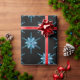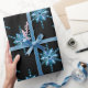 Ice Blue Christmas Star on Black Christmas Wrapping Paper