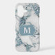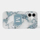 This pretty phone case showcases your monogram in silver grey at the centre of an ice blue ornate banner which is lined in silver. The banner is placed on a faux white marble background that is laced with faux blue glitter. Attractive for either a man or a woman.