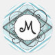 Ice Blue Modern-Retro Stripe Diamond with Monogram Classic Round Sticker